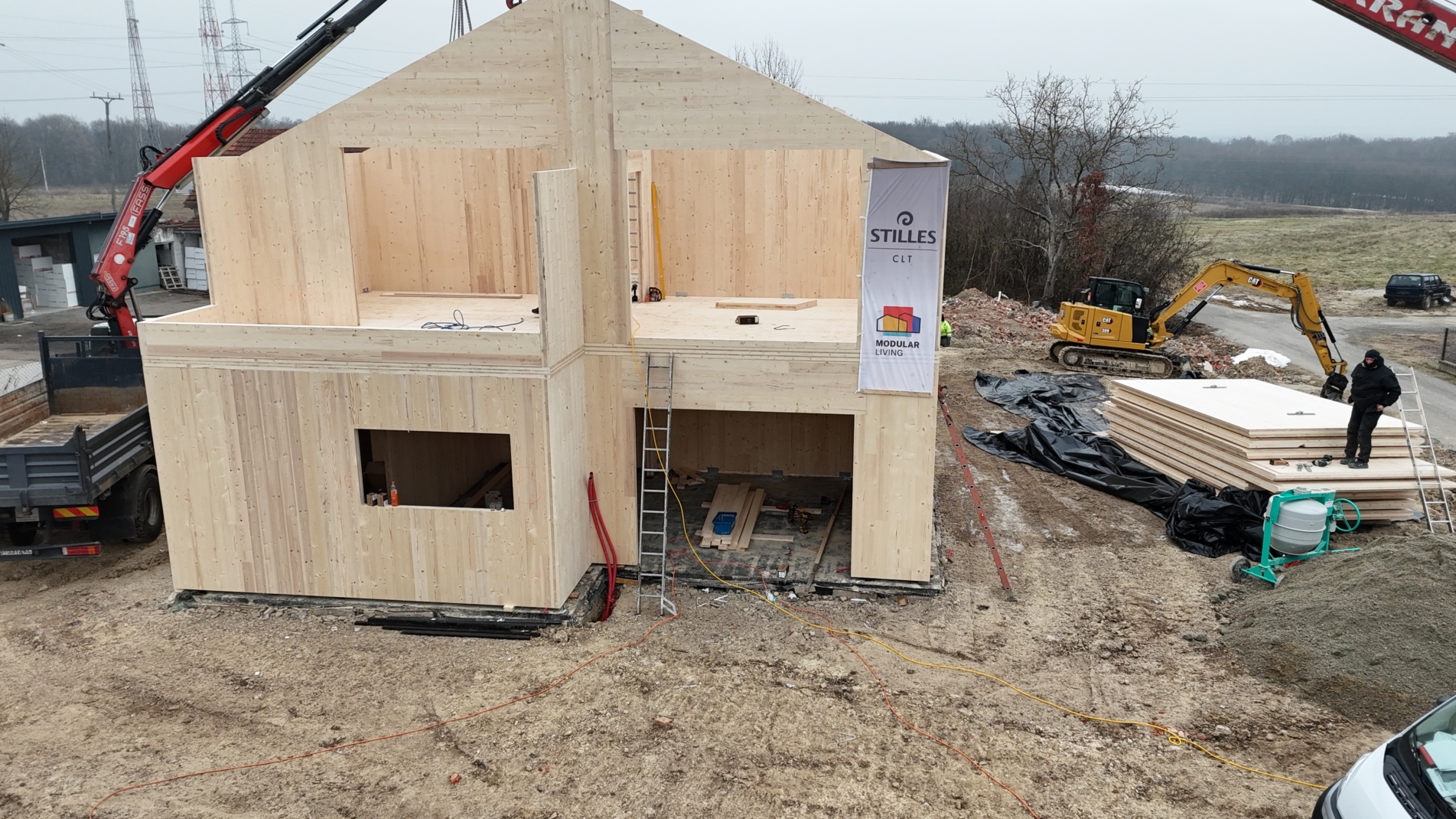 Hiša v Horvatih na Hrvaškem je razvita v sodelovanju z našim partnerjem Modular Living in zgrajena iz CLT panelov, izdelanih v Stillesu – tam, kjer se lesena gradnja začne z natančnostjo.